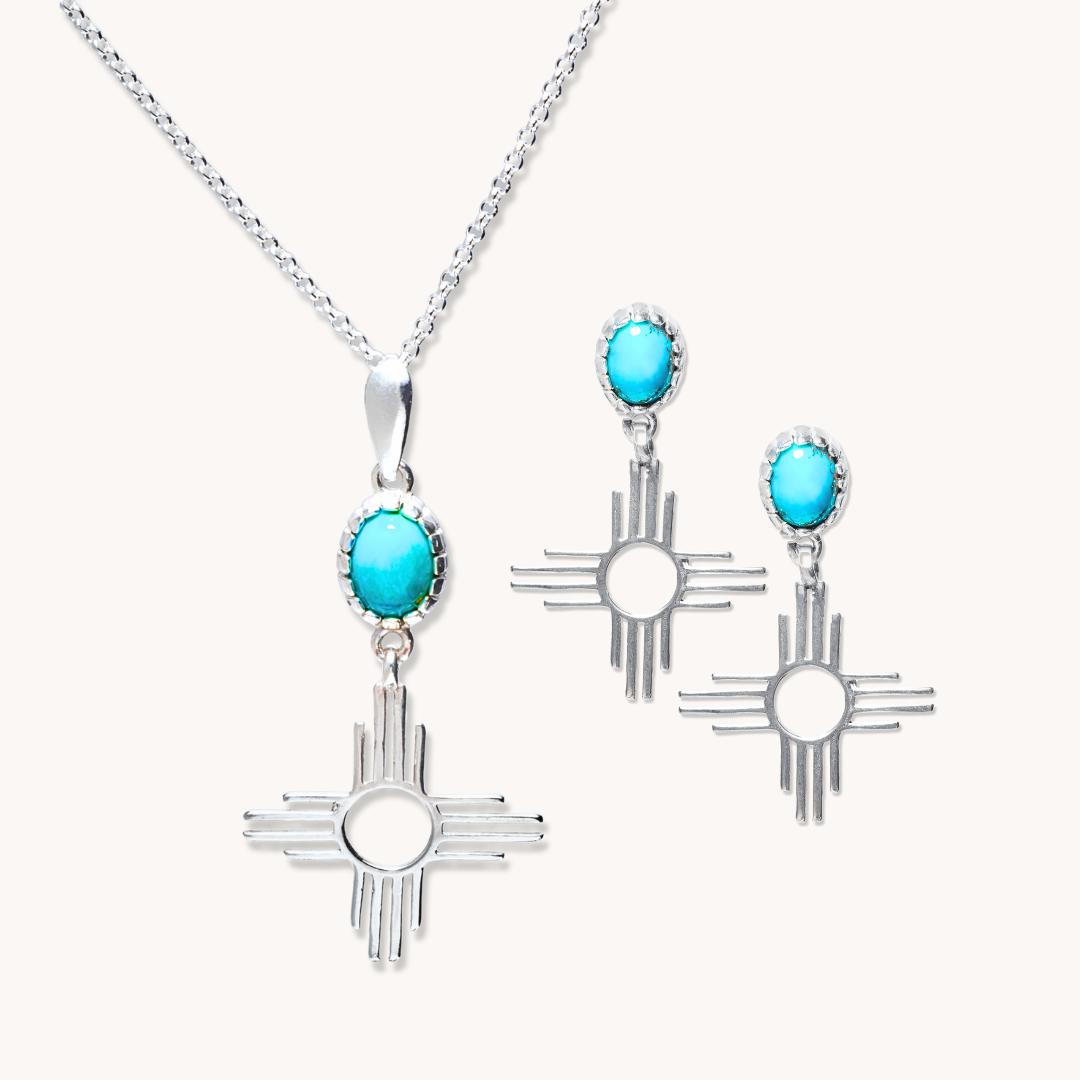 • This set includes: Turquoise Zia Pendant and Turquoise Zia Earrings