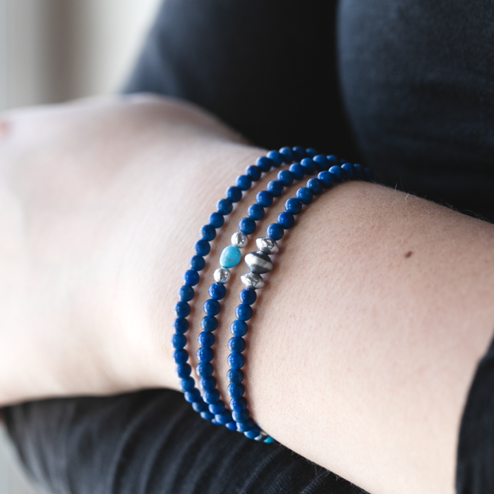 Base Stone: Lapis (Wisdom), Accent Stone: Navajo Pearl (Transition)