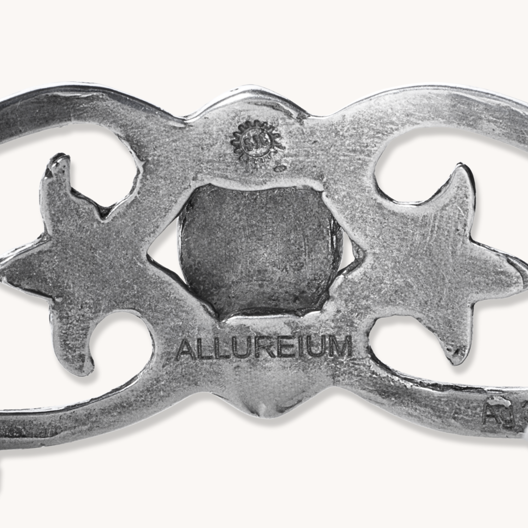 A bold expression of Southwest form and modern metallurgy, this cuff bracelet is handcrafted from Allureium™, our proprietary aluminum-based Silver alloy engineered for strength, durability, and everyday wear. Lighter than traditional sterling silver yet remarkably strong, Allureium™ allows for sculptural detail and comfortable all-day use without sacrificing presence.